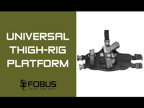 Maximisez la sécurité et le confort de votre équipement avec la sangle de plateforme de cuisse universelle Fobus® pour tous les étuis paddle et porte-chargeurs individuels.